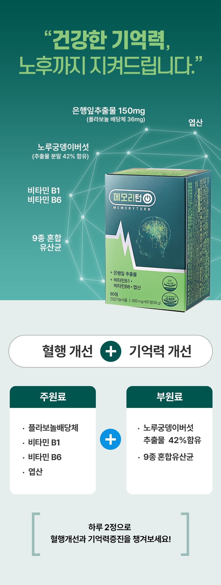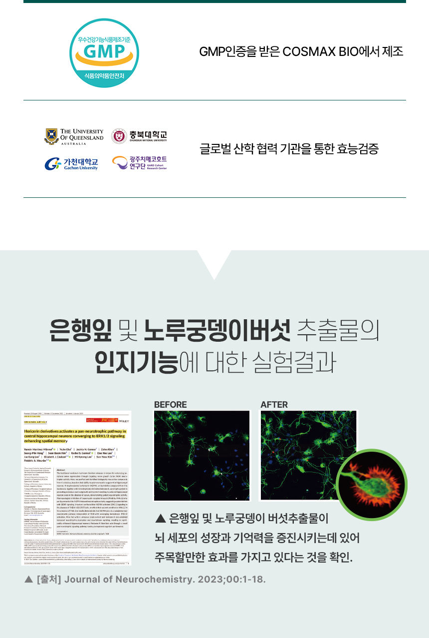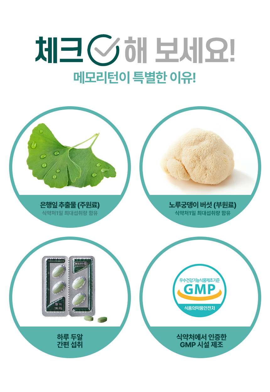 노루궁뎅이버섯과 은행잎에서 유용한 성분만을 추출한 제품입니다.