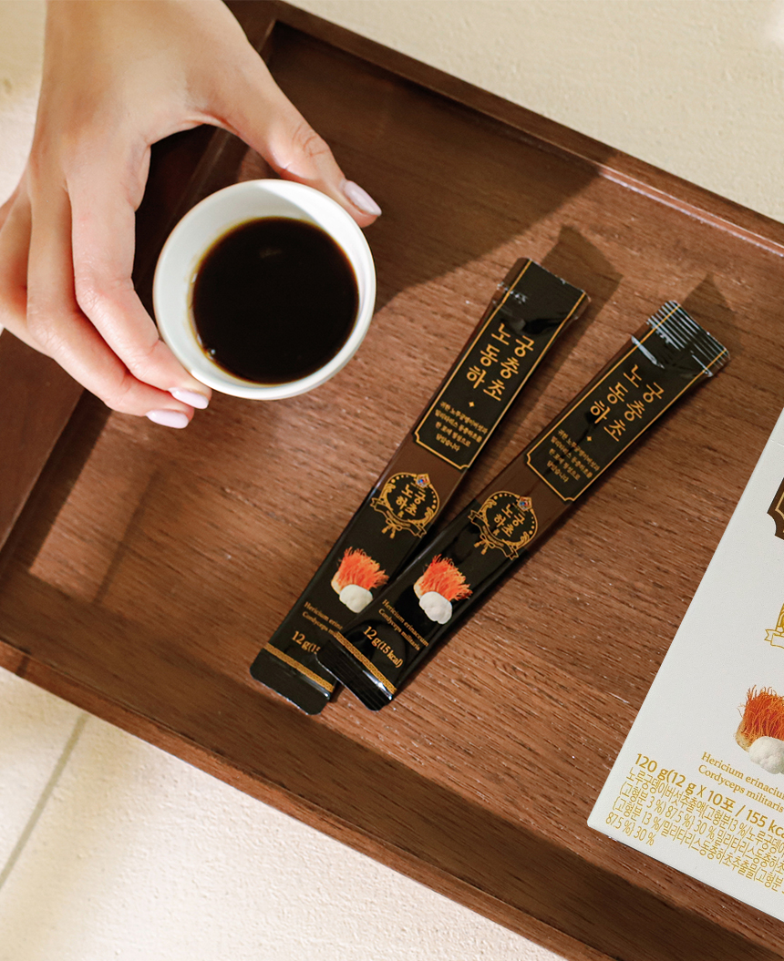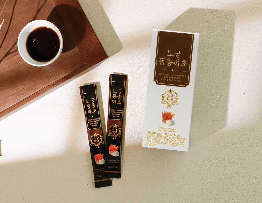 노루궁뎅이버섯과 밀리타리스 동충하초에서 유용한 성분만을 추출한 스틱형 간편제품입니다.